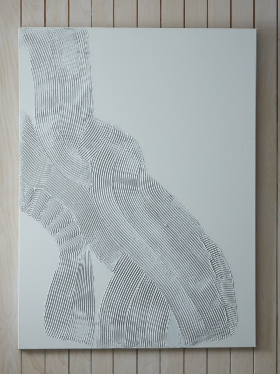 Un tableau moderne à la texture tactile. Simple et élégant grâce à son utilisation d'une seule couleur, sa texture crée des variations de couleurs naturelles grâce à la profondeur des nuances. Il complètera délicatement votre décoration et offrira une belle superposition à vos murs.