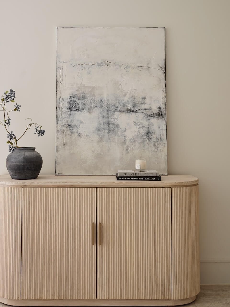 La décoration murale de luxe Nevao présente de magnifiques tons allant d'une base pierre douce rehaussée de gris anthracite et de touches de bleu. Son design léger et aérien offre un équilibre parfait entre profondeur de couleur et simplicité élégante. Choisissez avec ou sans cadre en chêne selon vos goûts.
